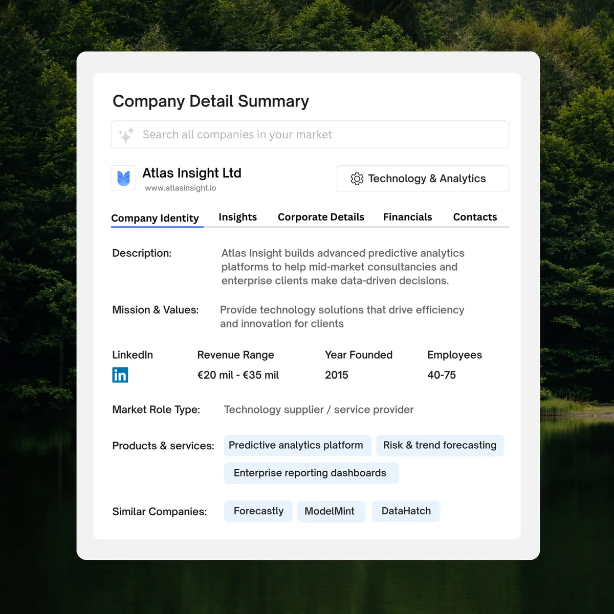 Clear, structured profiles for every company so you know who they are, what they do, and where they operate.